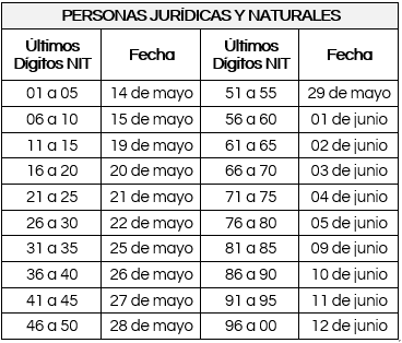 De acuerdo con la Resolución 000162 de 2023, modificada por la Resolución 000188 de 2024, los vencimientos son: